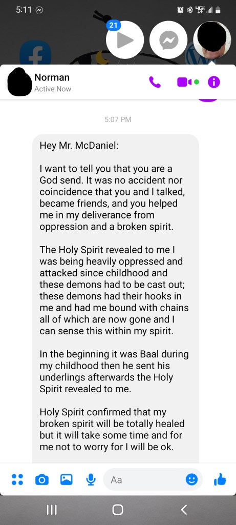 What begins as a response to me fishing some videos online quickly turns into a question-and-answer session on Facebook Messenger, then a phone call and ultimately deliverance. Today, the Man from the North is delivered from a spirit spouse, The Ancient Canaanite God, Ba’al, and has his spirit restored. Quite awesome.