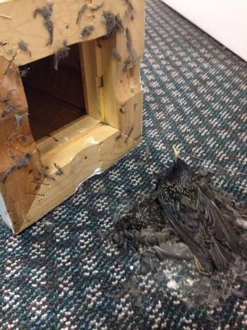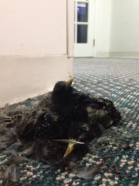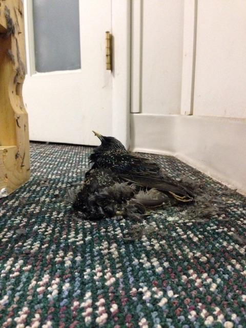 Allow me to build my case for the improbability of the birds getting under the columns naturally. First, two of this type of bird flying into THIS building together is improbable. Even if these two birds did fly in together, the birds couldn’t have schemed to pick up the cosmetic column together and crawl under it. Why would they do that? Second, even if they had plotted bird suicide – which is an absurd thought – this method would have been far too difficult…for birds. Birds die naturally, outdoors. A bird doesn’t die and become flat, naturally. Also, a bird doesn’t die and naturally remain in an upright posing position. How does the top bird assume a position of nesting, or dominance over the squashed one (ritual)? The probability of any of the former things is absolutely zero!!!