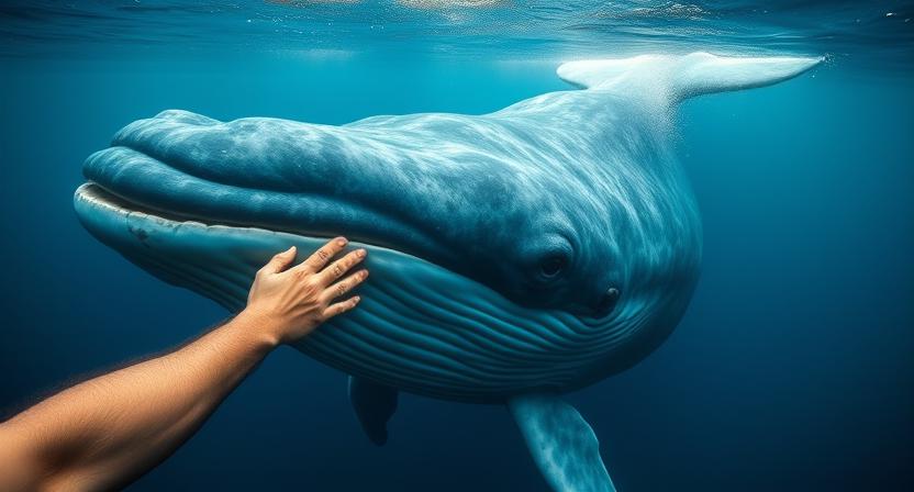 I’m not familiar with whale species, google, and find this is a Blue Whale. The whale’s face is huge and where he comes up from is dark and mysterious to me. I’m amazed at how large he is. He comes up beside us, as if a large ship would to dock, sideways, and I see his huge eye looking at us. I’m at The Father’s right hand, He’s to my left and we’re looking at this magnificent creature. He’s gentile; docile almost. I feel this whale knows who The Father is and is yielding to Him. Suddenly, I see a couple more of these whales approaching us. Somehow, I feel the whales excitement as they swim at a very high velocity, only to come to a sudden halt in front of us as they watch Him interact with the first. We both extend our arms out to rub the side of the first whale. I begin hearing whale sounds from the one in front of us, the others join in and I hear the whales communicating in concert. I see a baby, circling around, above us. This one’s particularly playful and the mother has no worries. She’s not being protective, as if she knows her baby will be fine separated from her around The Father.