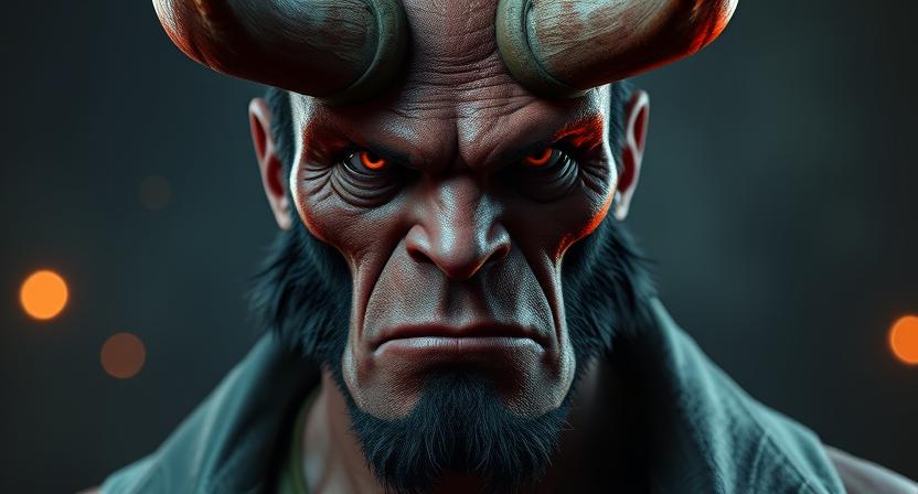 He’s crawling out of the ground, I see that his body is red and ask Jesus, “Is this The Satan?” Jesus answers, “No. Not The Satan” and this being is fully out of the ground now, standing in the street in front of my house. He raises his hands and arms high into the air, growling and screaming. He crouches and smashes his fists to the ground. He’s on all fours now and he’s looking from side to side, as if to scan the area for a target. As I write this to the reader, I’m looking for an image to give a close idea of what I was looking at. I find this image of a red being used in the movie Hellboy. This image is close to what I see, but the face is slightly different and the horns were positioned more to the outside of the head.