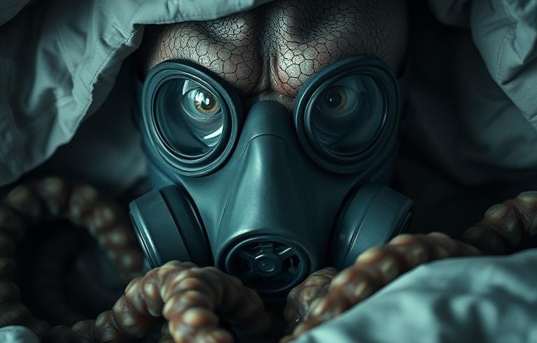 I ask Father God, “What do You want me to do, Father?” He tells me, “I want you to look under the bed.” I do and feel as if I’m seeing two things in one: both machine and living organism. I’m looking and remembering that my father had a CPAP machine. My father would intermittently stop breathing at night, for short periods of time, was diagnosed with sleep apnea and prescribed a CPAP machine to help him with this condition. I’m looking at what I’ve found under the bed. I see the hoses from the CPAP machine and eyes, staring back at me, but the being is stuffed way back under the bed, like an octopus would hide in its natural environment, conforming to a rock or something, changing its color to adapt to its surroundings.